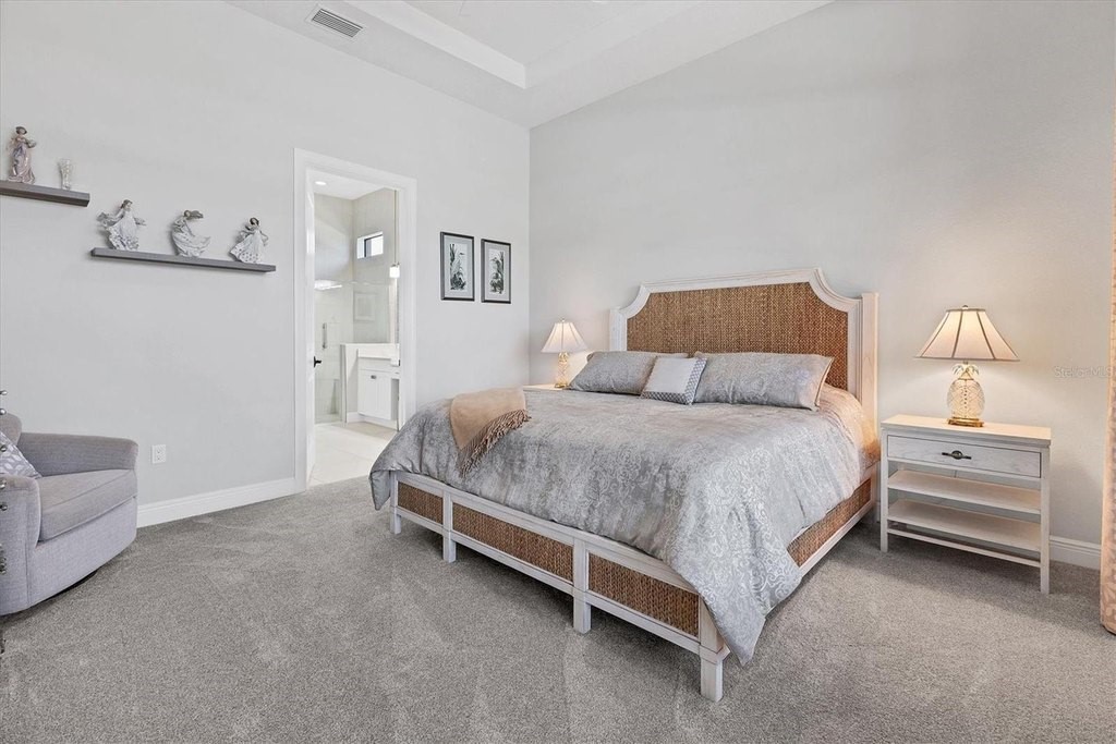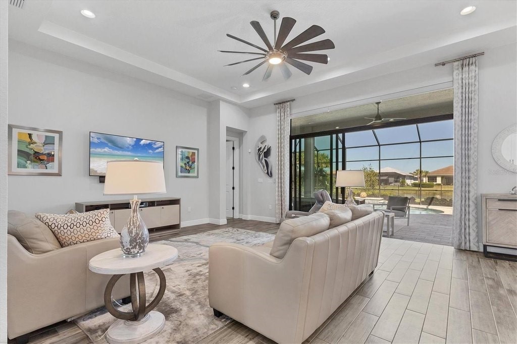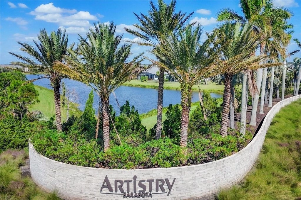 Luxury meets value in Artistry Sarasota! This beautifully designed 2-bedroom plus den, 2-bath home sits on a premium waterfront homesite while offering quality, style, and comfort in one of Sarasota's premier gated communities. Step inside to an inviting open layout filled with natural light. The bright, modern kitchen features white cabinetry, quartz countertops, a 36" gas cooktop, and a wall oven, all open to the dining area and great room with peaceful lake views. Elegant electric shades in the living and dining areas provide effortless comfort and privacy at the touch of a button. The den off the foyer makes an ideal home office or creative retreat, while the owner's suite impresses with coffered ceilings, a dual-sink quartz vanity, and a frameless glass-enclosed shower with bench. Enjoy Florida living at its finest on the extended covered lanai, complete with an outdoor kitchen, electric sun shade and sparkling saltwater pool perfect for relaxing or entertaining while taking in tranquil water views. The fenced yard is a great bonus for pets. Artistry Sarasota is a natural gas, maintenance-free community offering neighborhood amenities including a clubhouse, fitness center, pool, playground, pickleball and basketball court, plus easy access to Lakewood Ranch, downtown Sarasota, and the Gulf beaches.